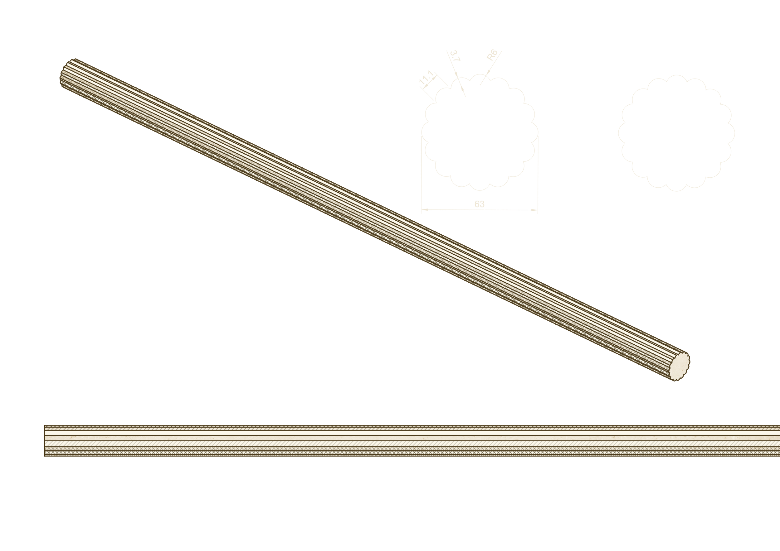 Round, reeded, fluted, or open twist. All of our poles are available in natural wood, gilded, or painted finishes and in sizes from an inch and a half to three inches with matching rings. (Larger sizes by request.)