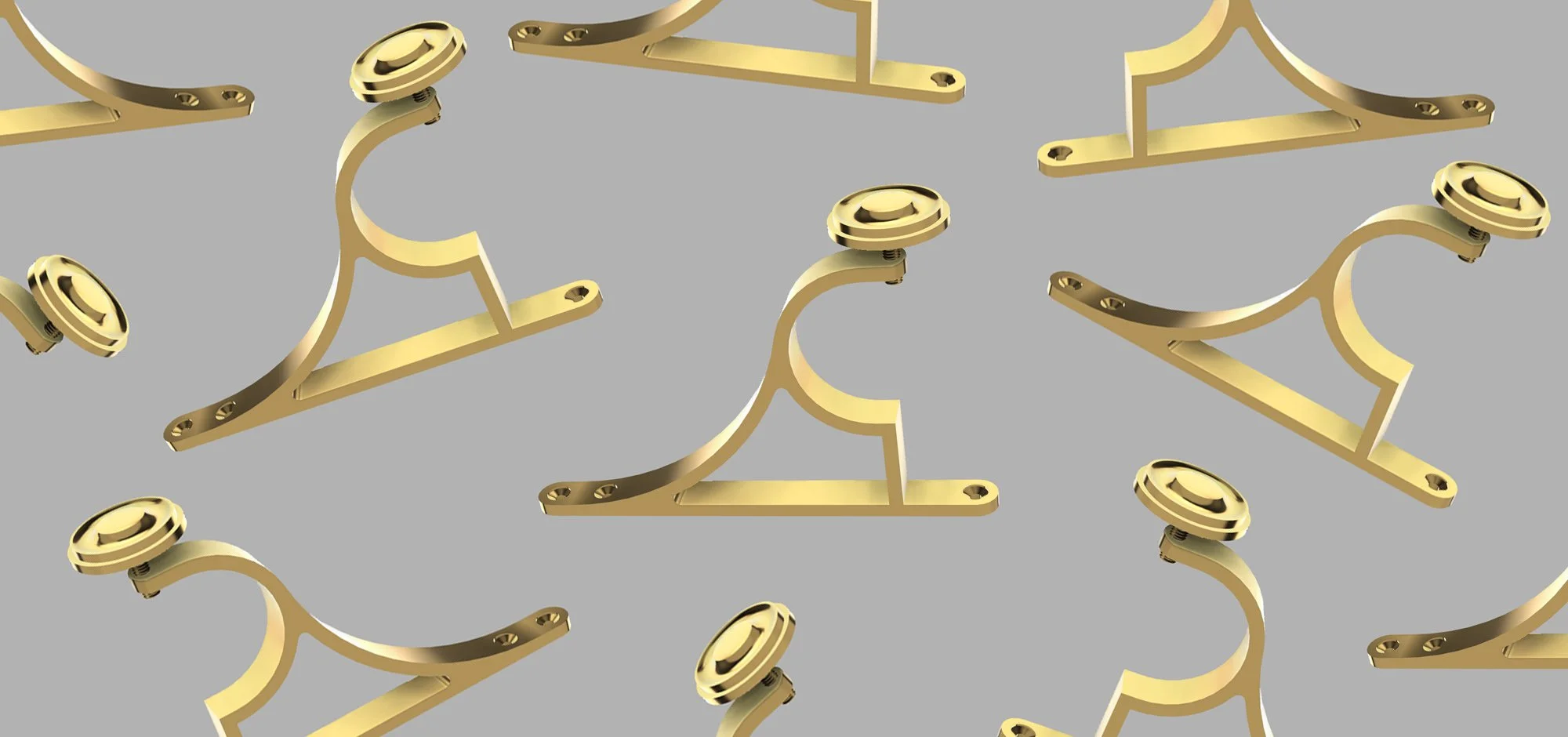Cast brass brackets to fit specific pole widths.